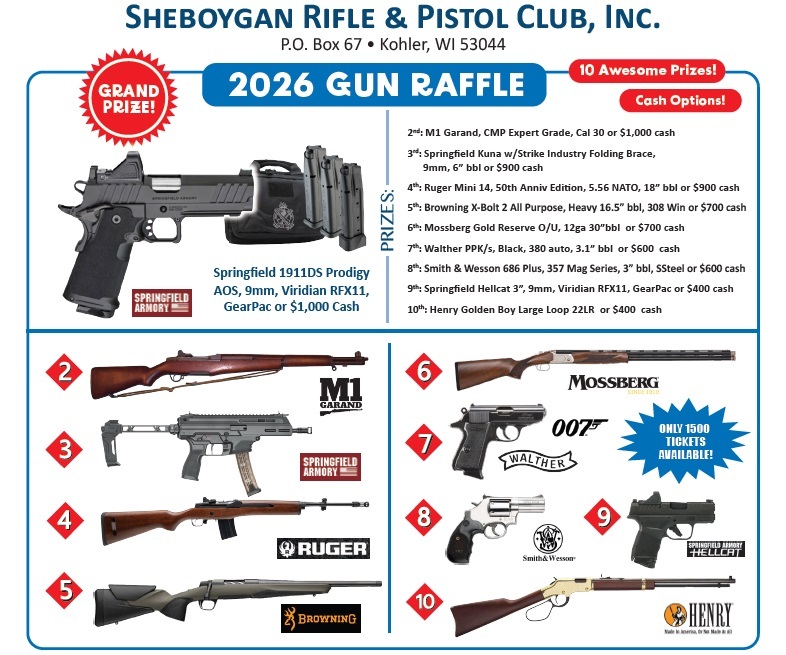 Once again the Raffle Committee put together another great line up of firearms for the Sheboygan Rifle & Pistol Club's annual raffle!